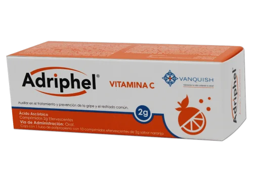 ADRIPHEL (Ácido Ascórbico) 2 GR. C/10 COMP. EFERVECENTES. SABOR NARANJA. VANQUISH