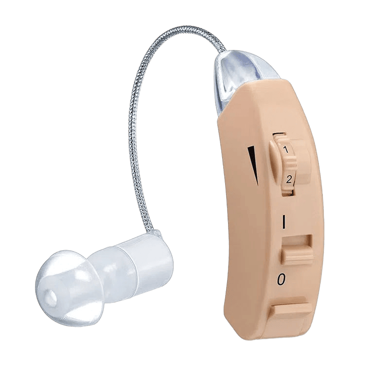 El amplificador de sonido es muy discreto. El ajuste ergonómico detrás de la oreja hace que apenas se vea. La reproducción es silenciosa. El volumen de sonidos en espacios cerrados y al aire libre se amplifica, y eso ayuda a personas con problemas de audición.
