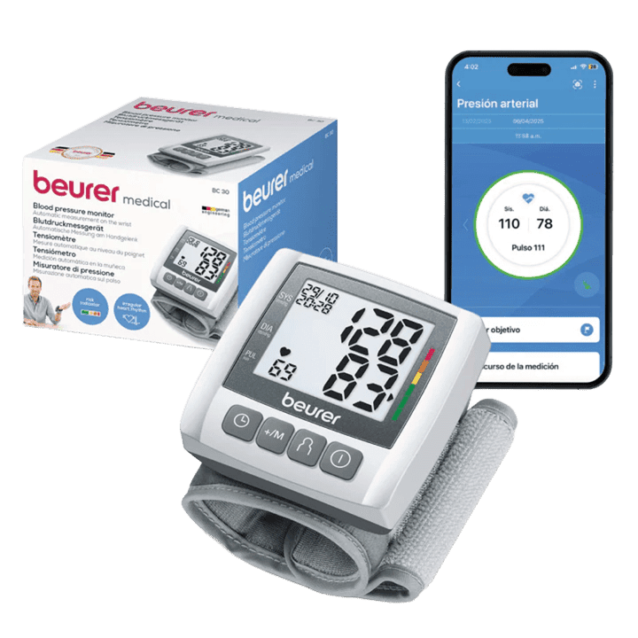 Monitorea tu presión arterial con comodidad y precisión con el BC30 de Beurer, un tensiómetro digital de muñeca confiable y fácil de usar, perfecto para el control personal desde casa.