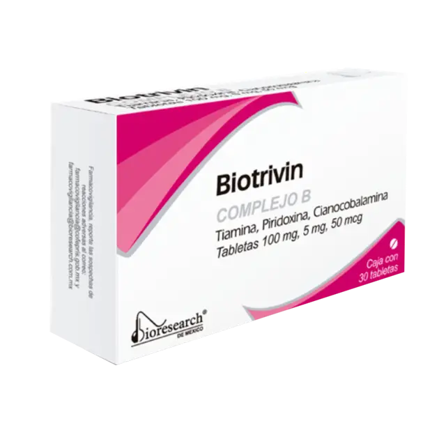 BIOTRIVIN (Complejo B [Tiamina, Piridoxina, Cianocobalamina]) 100/5/0.05 MG. C/30 TABS. BIORESEARCH