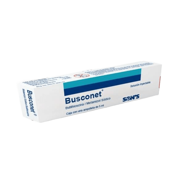 BUSCONET (Butilhioscina-Metamizol Sódico) 20 MG-2.5 G/5 ML. SOL. INY. C/1 AMP. SONS