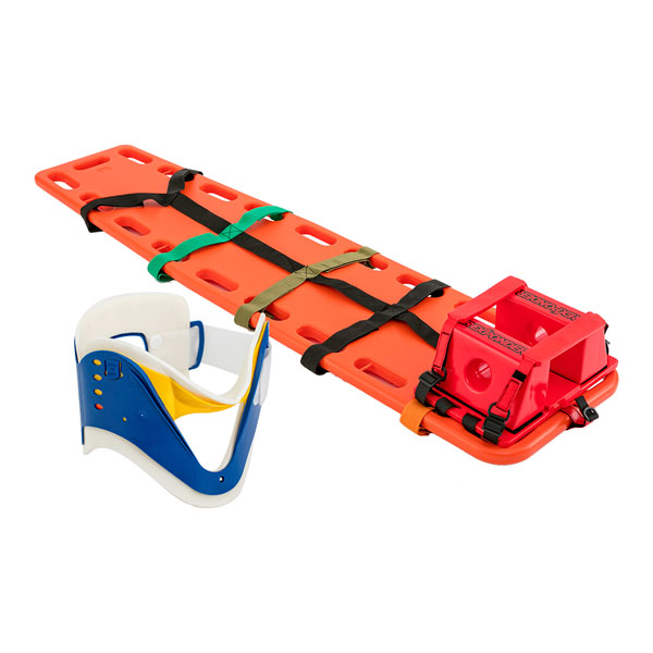 CAMILLA DE RESCATE EQUIPADA KIT (COLLARIN, INMOVILIZADOR DE CRANEO, INMOVILIZADOR ARAÑA). PLASTICO