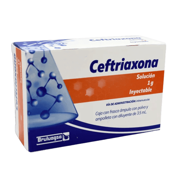 El frasco ámpula con polvo contiene: Ceftriaxona 1g; La ampolleta con diluyente contiene: Lidocaína al 1%/3.5ml.
