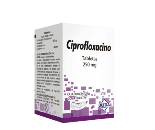 Cada tableta contiene: Ciprofloxacino 250mg.