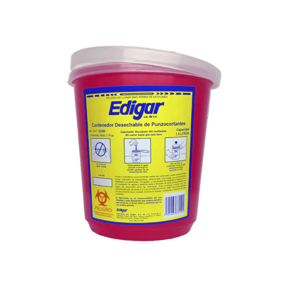 CONTENEDOR DESECHABLE DE PUNZOCORTANTES CAP. 1.5 LTS. EDIGAR