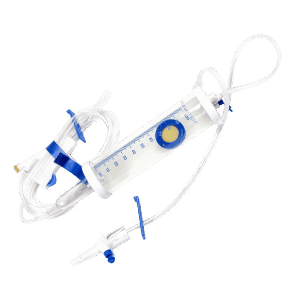 Bayoneta, filtro de aire, cámara burrera flexible con una capacidad de 100 ml y escala graduada en mililitros, cámara de goteo flexible, microgotero, tubo transportador, mecanismo regulador de flujo, dispositivo para la administración de medicamentos, obturador del tubo transportador, adaptador de aguja, protector de la bayoneta y protector del adaptador.