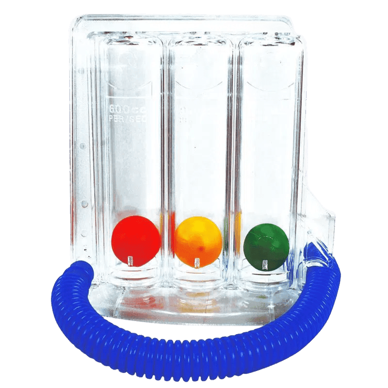 - Dispositivo ejercitador de la inspiración y/o espiración profunda para prevención de complicaciones postoperatorias de tipo pulmonar.