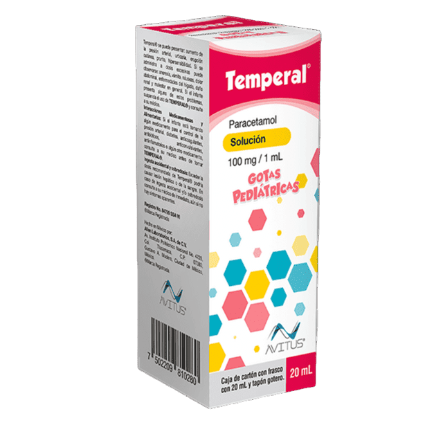 TEMPERAL SOL. PEDTCA. (Paracetamol) 100 MG/1 ML. FCO. GOTERO 20 ML. AVITUS