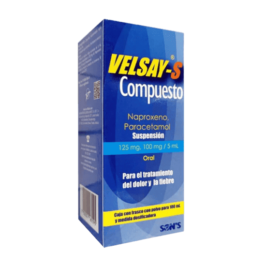 VELSAY-S COMPUESTO (Naproxeno Sódico/Paracetamol) SUSP. 125-100 MG/5 ML. FCO. 100 ML. SONS